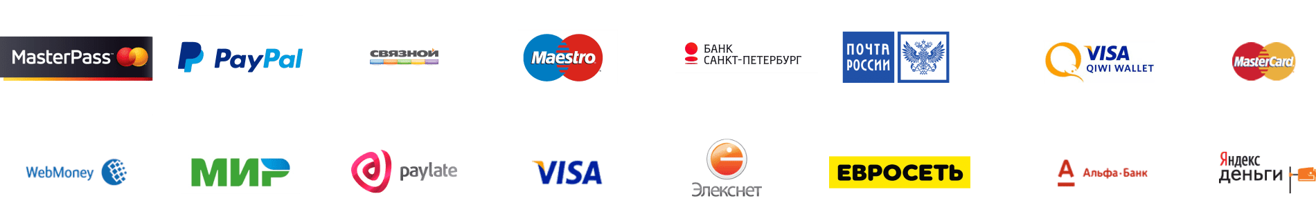 проводится через надежные платежные системы VISA, MasterCard, МИР. Поддерживаются популярные