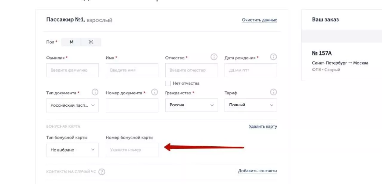 Регистрация билетов на поезд